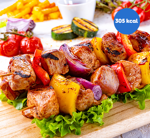 3. Préparez les brochettes en alternant un morceau de viande et un morceau de poivron ou d’oignon.