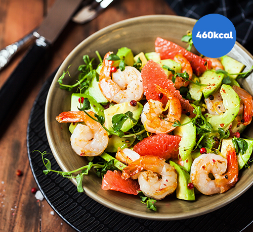 La recette de la Salade de crevettes, avocat et pamplemousse